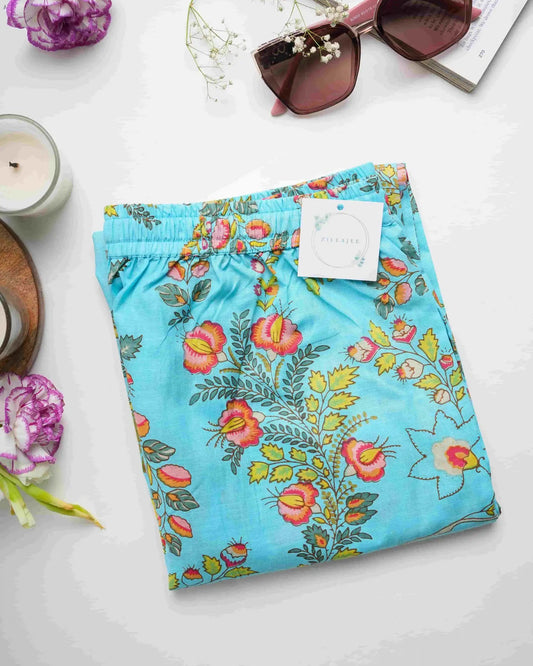 Cotton Pajama Pants Women - Tranquil Blue