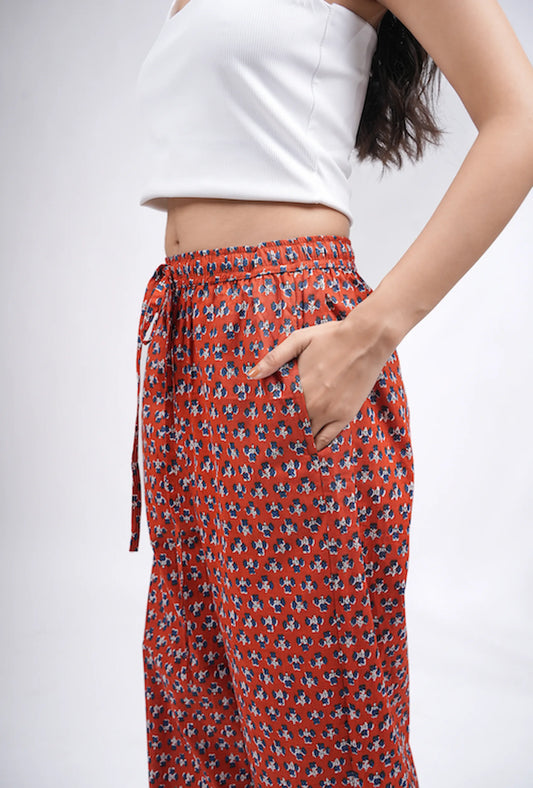 Cotton Pajama Pants Women - Fire Petals
