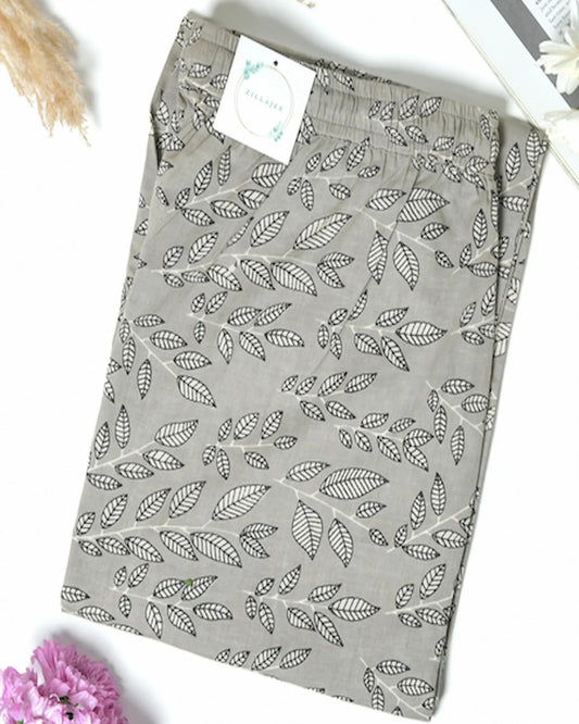Cotton Pajama Pants Women - Silver Leaves