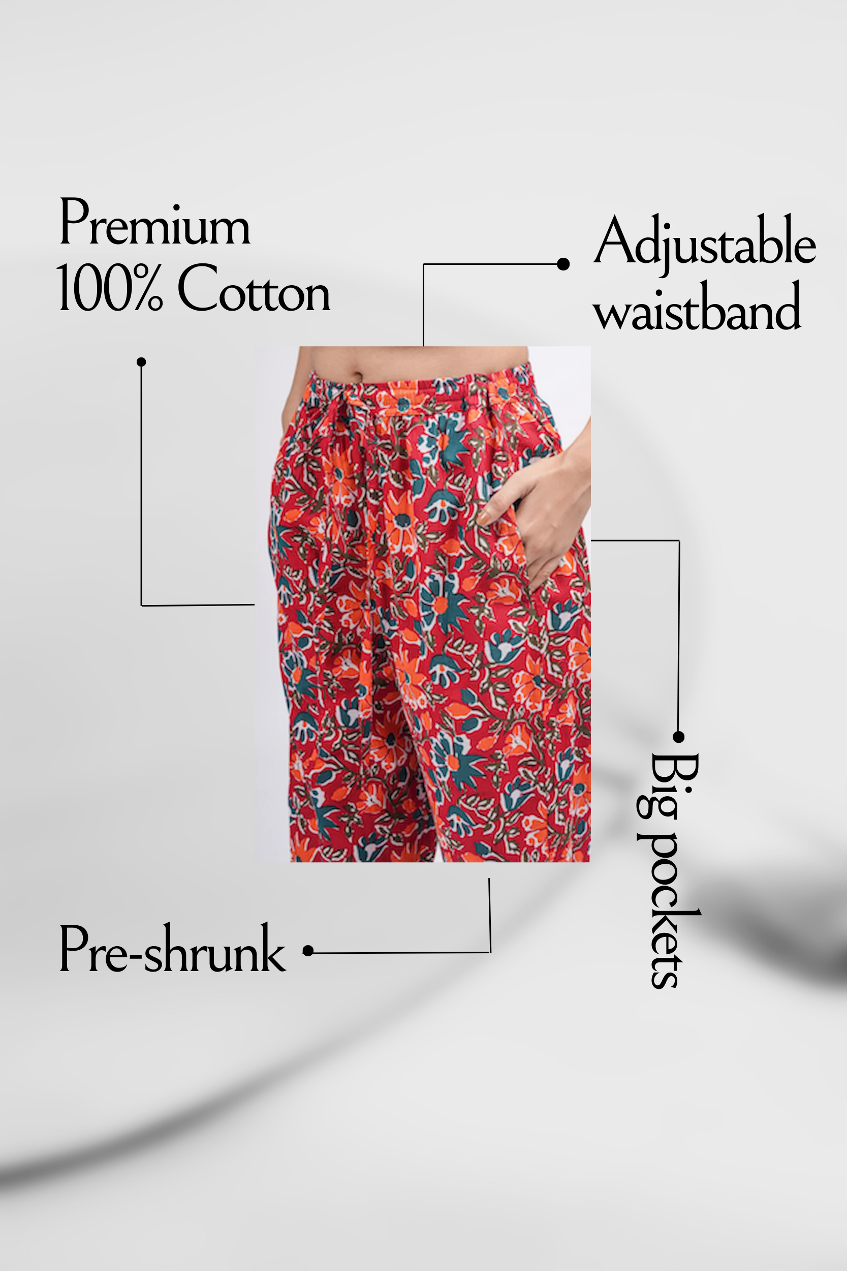 Embrace comfort and style with the Cotton Pajama Pants Women - Saffron Petals. The vibrant saffron petals pattern adds a playful yet elegant look, while the soft, breathable cotton ensures all-night comfort. Perfect for lounging at home or unwinding after a long day, these pajama pants are a must-have for your cozy wardrobe.