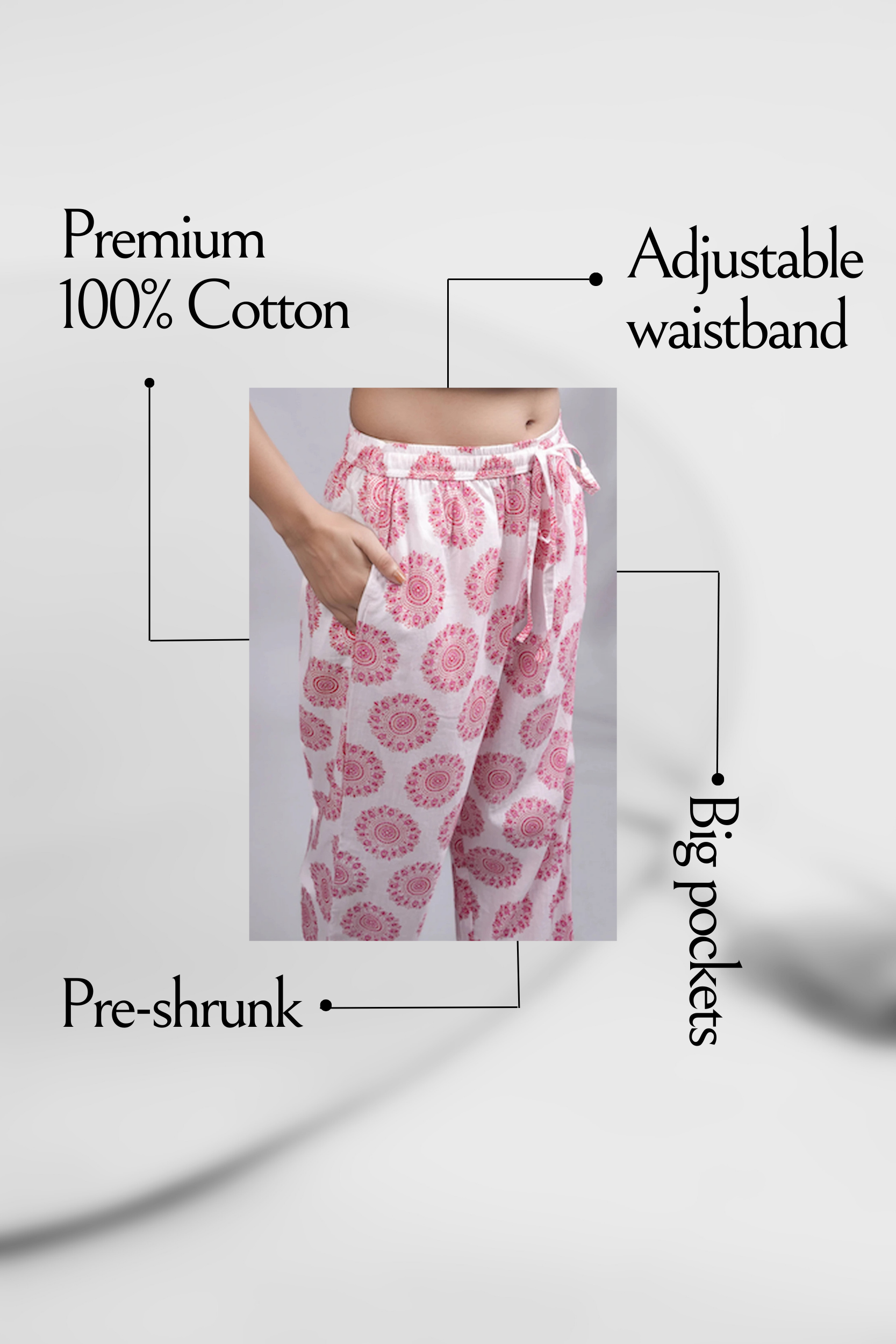 Unwind in the Cotton Pajama Pants Women – Soft Blush, designed to blend style and relaxation seamlessly. The delicate blush shade adds a touch of sophistication to your everyday loungewear, while the airy cotton fabric ensures comfort through warm nights or lazy mornings.